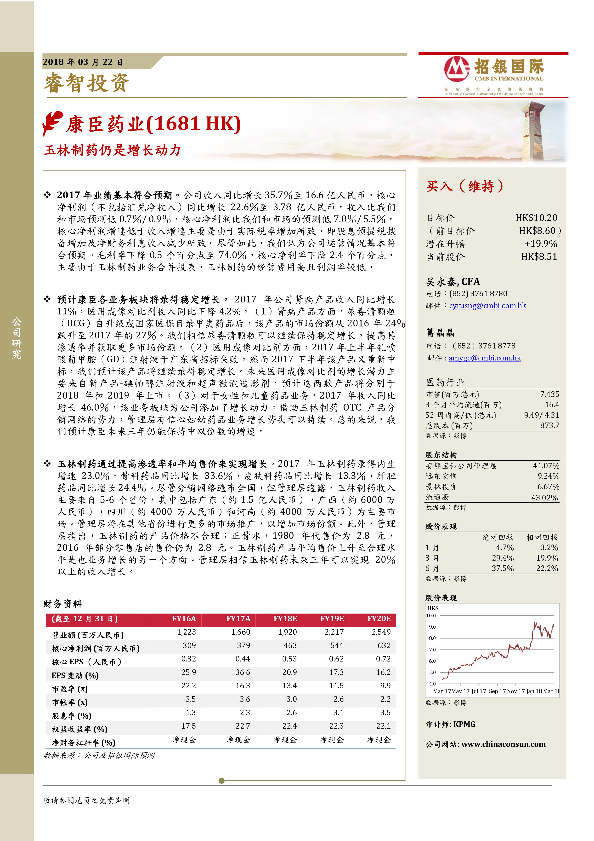 招银国际-康臣1681:玉林制药仍是增长动力,维持“买入”评级
