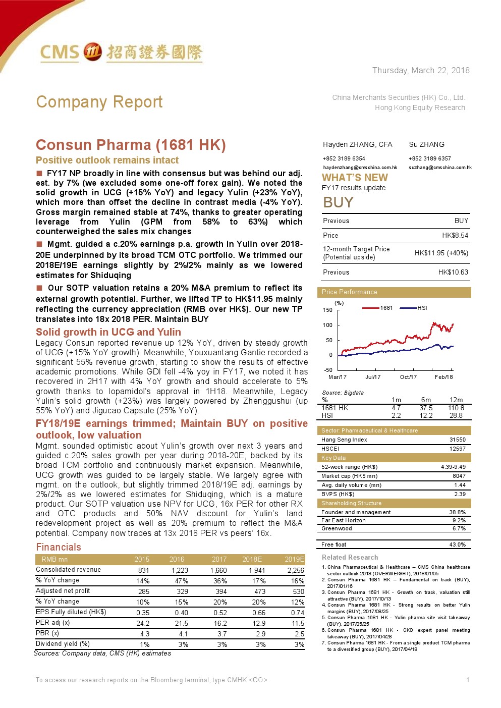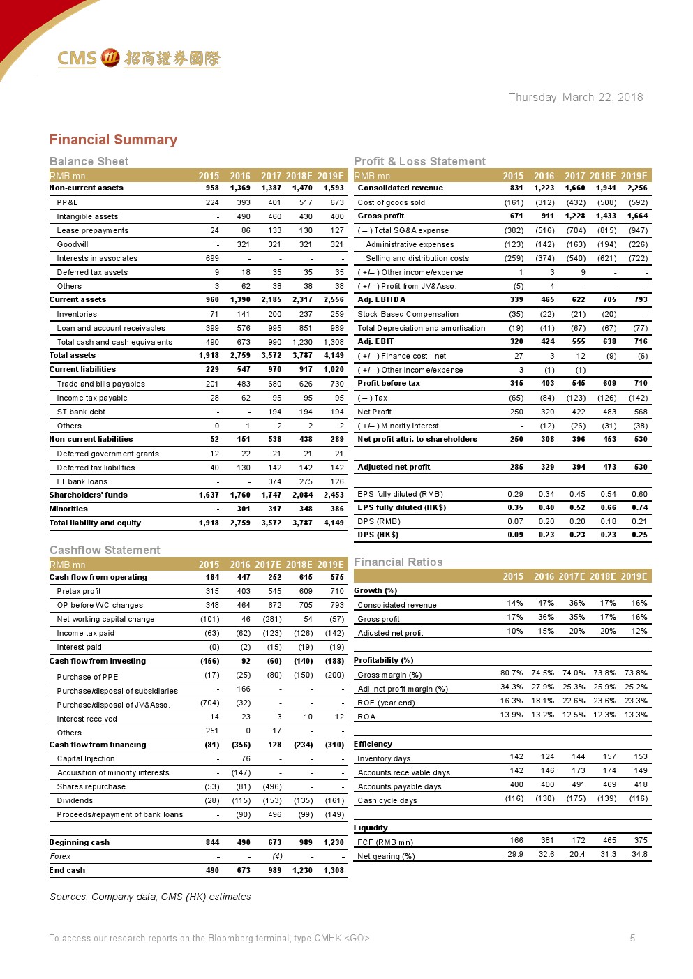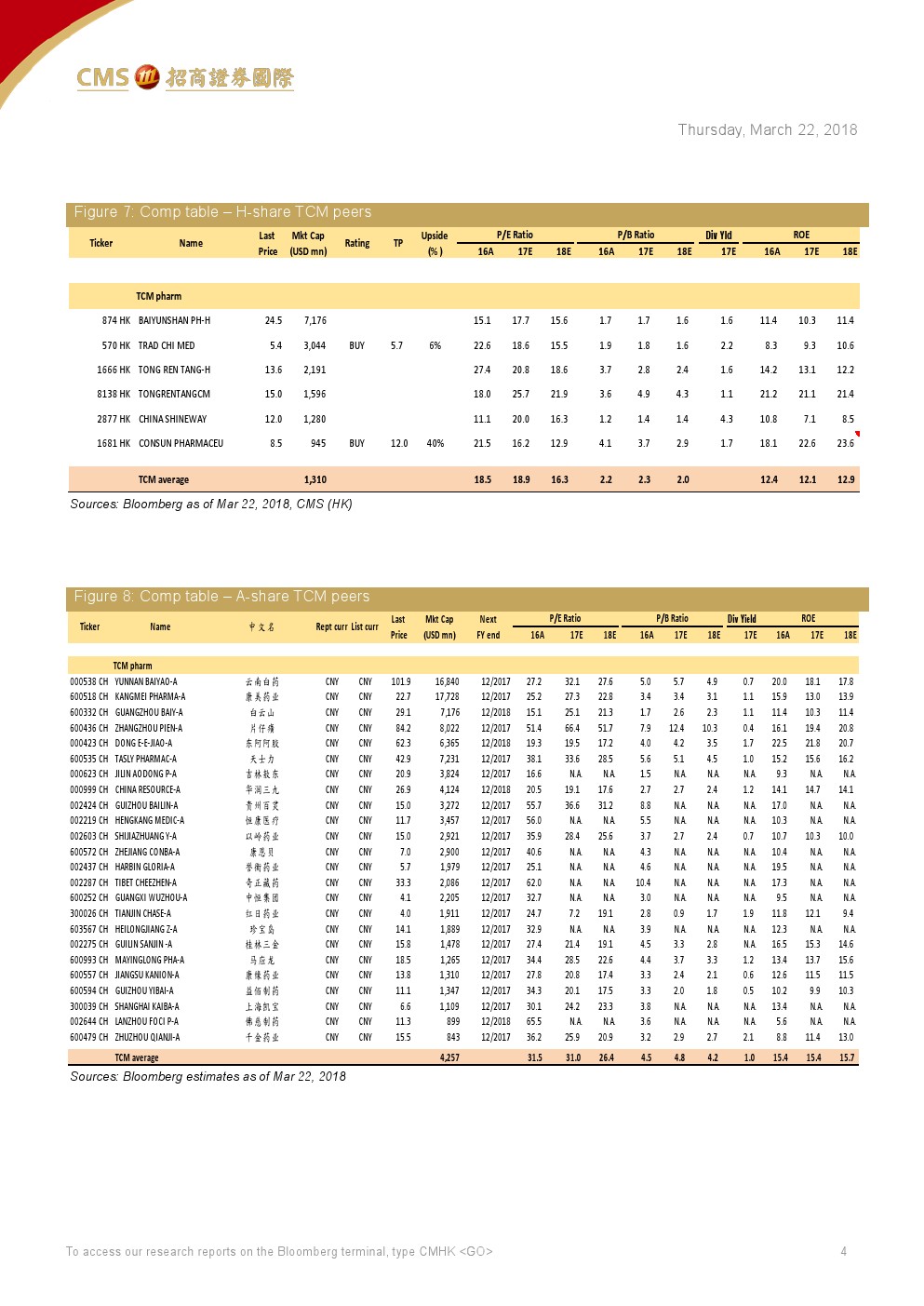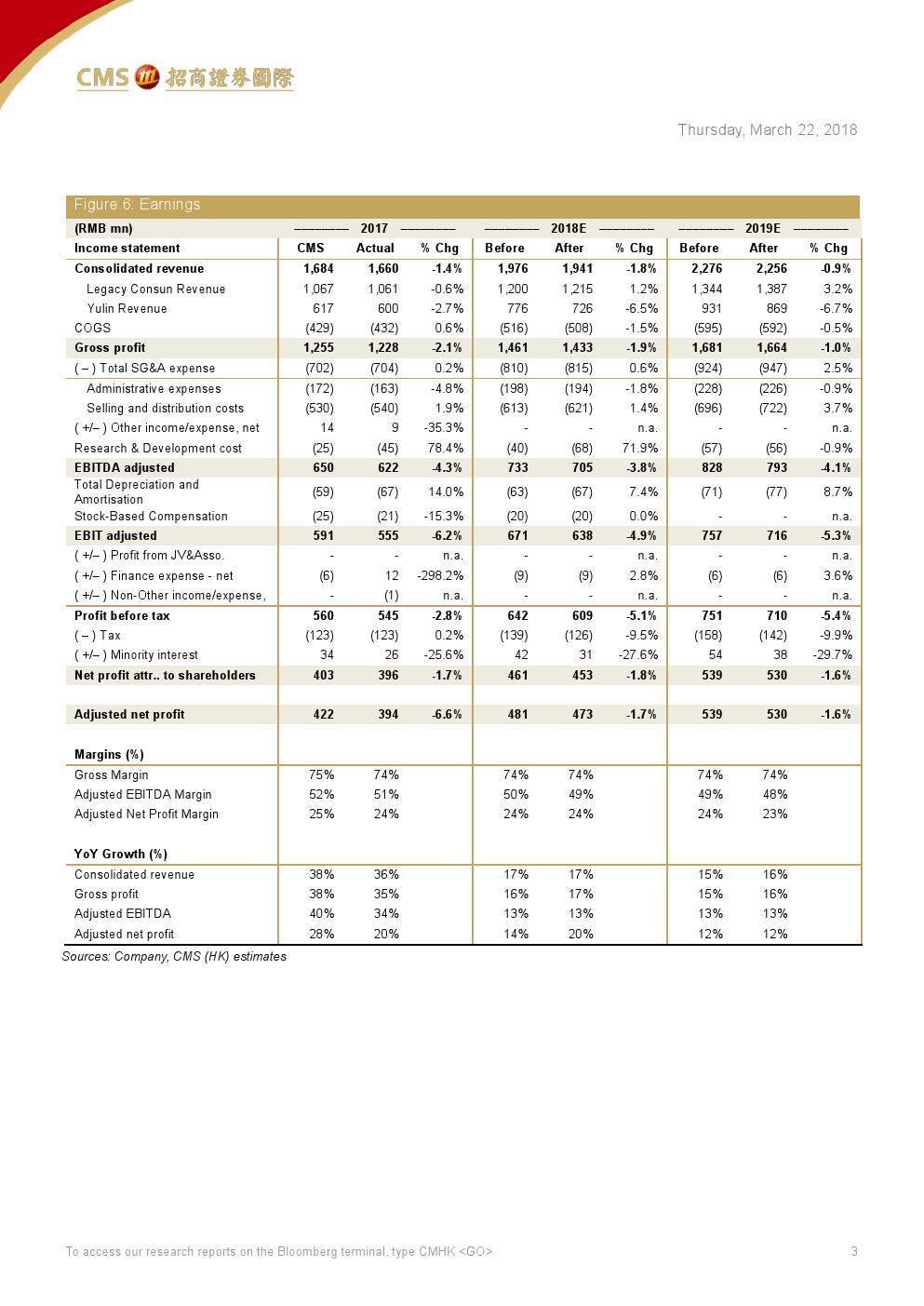 2)考虑到玉林制药多样化的现有产品体系,管理层对玉林制药2018-2020年净利润给予20%增速指引。出于对湿毒清盈利预期调整,招商证券国际分别降低了2018至2019年玉林盈利增速2%;