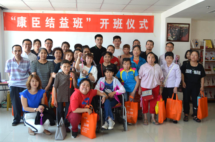 仪式结束后,社员们参加了康臣药业集团捐资开办的“康臣结益班”的开班仪式,并与20名残障人士共同学习结艺编织。看似简单的中国结,也需要大家用心编织,才能收获满意的作品。